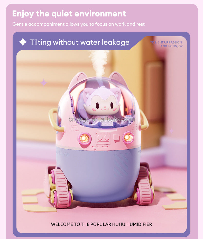 This humidifier is made of high quality materials, which can effectively increase the humidity in the room and relieve the discomfort caused by dry air. At the same time, it also has a variety of cute doll designs